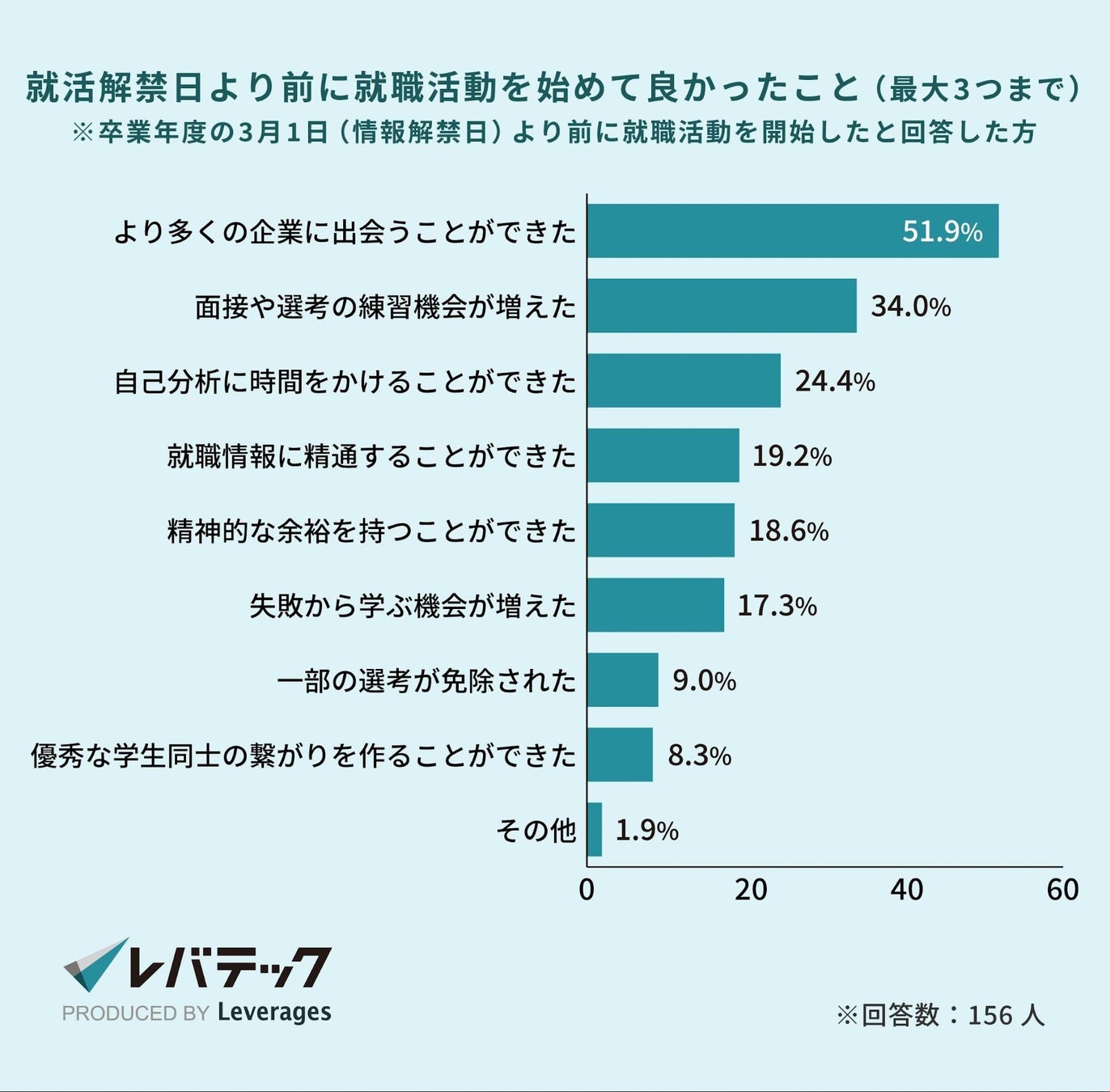 就活を早く始めて良かったこと、半数以上が「より多くの企業と出会うことができた」と回答