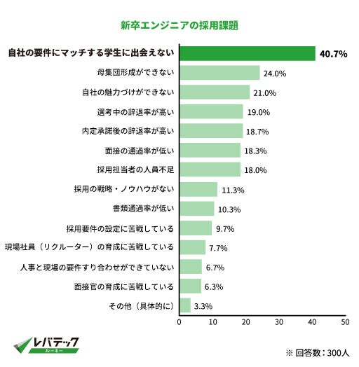 同調査*2で最も多い採用課題は「自社の要件にマッチする学生に出会えない(40.7%)」という結果になり、多くのIT企業が自社の採用ターゲットとなる学生へのアプローチに課題を感じていることが分かりました。今後、更なる採用競争の激化が見込まれる市場において、学生からの応募を待つ従来の採用方法では新卒エンジニアの獲得がより一層困難になることが予想されます。