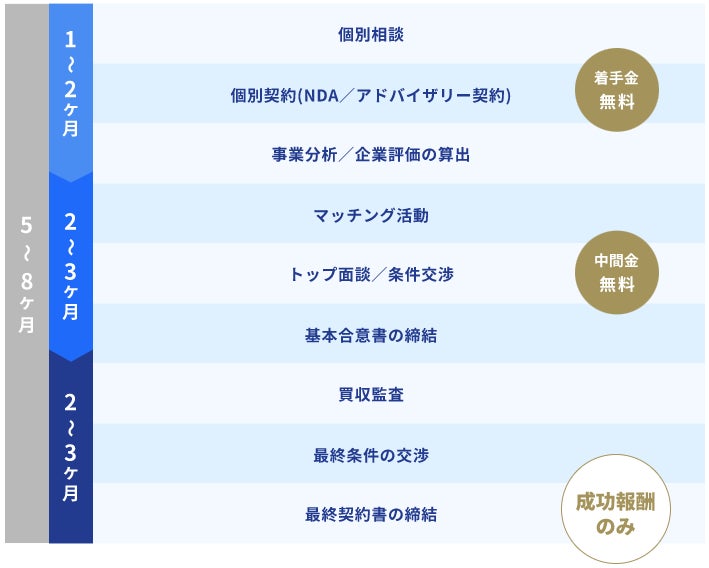 レバテックM&Aは、SierやSES事業を展開する「IT企業」に特化したM&Aの仲介サービスを提供いたします。着手金や中間金、月額報酬が無料の完全成果報酬型で、個別面談から最終契約締結までは最短3ヶ月。専門のアドバイザーがM&Aに必要な手続きをワンストップでサポートします。