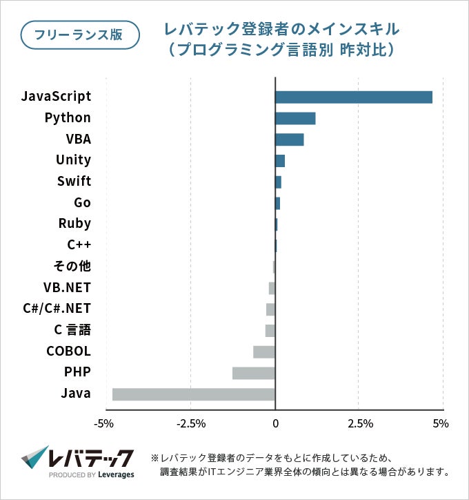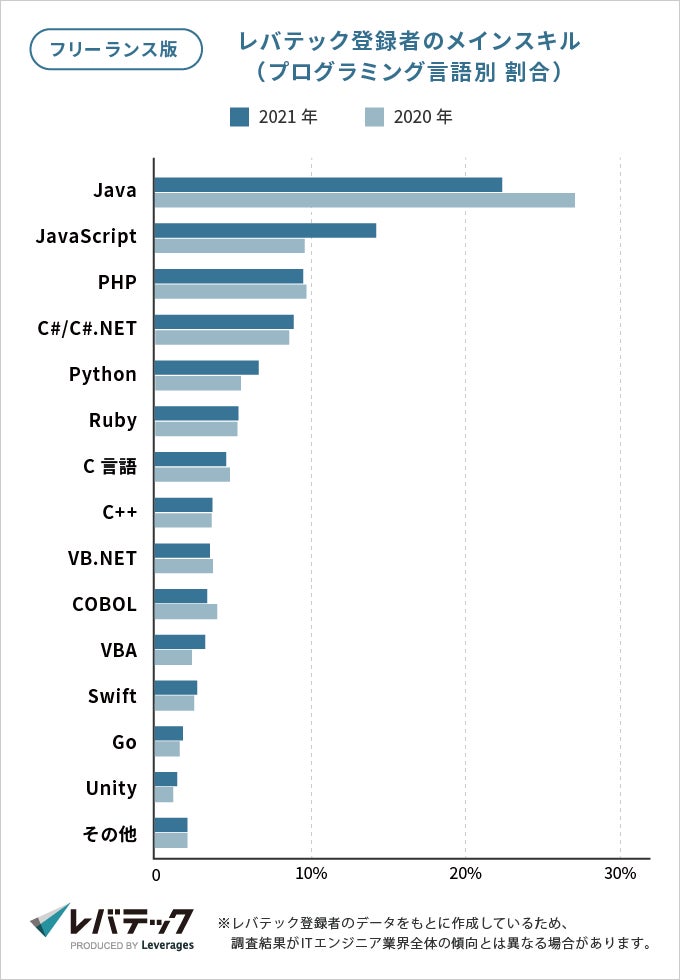 レバテック株式会社が運営するITエンジニア・クリエイター専門エージェント、レバテックフリーランスは、2020年から2021年の新規登録者データをもとに、今年のフリーランスITエンジニアの動向調査を実施しました。