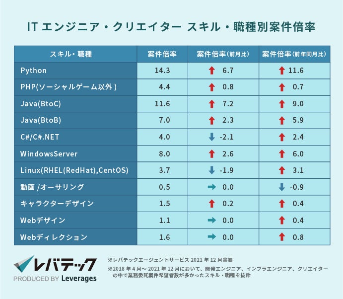 ▼レバテックで対応する全スキル・職種の案件倍率はこちら▼