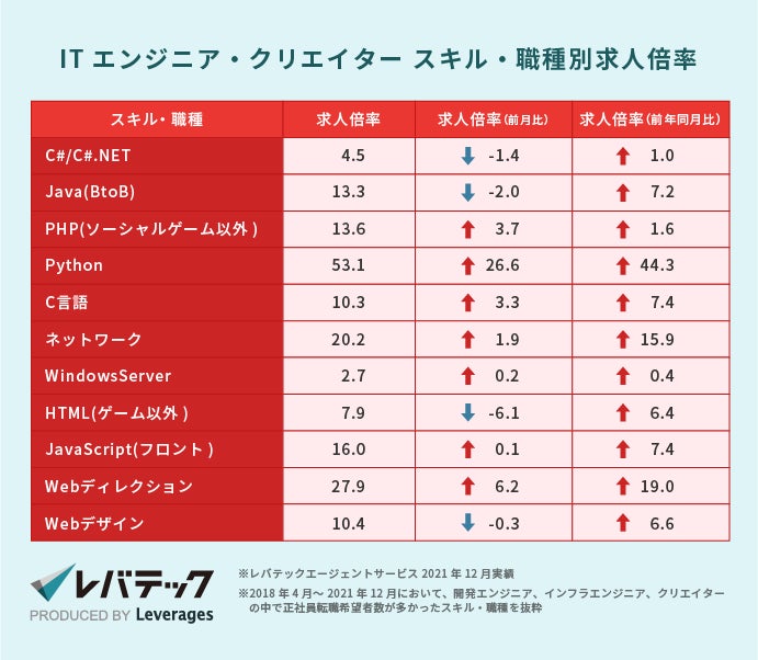 ▼レバテックで対応する全スキル・職種の求人倍率はこちら▼