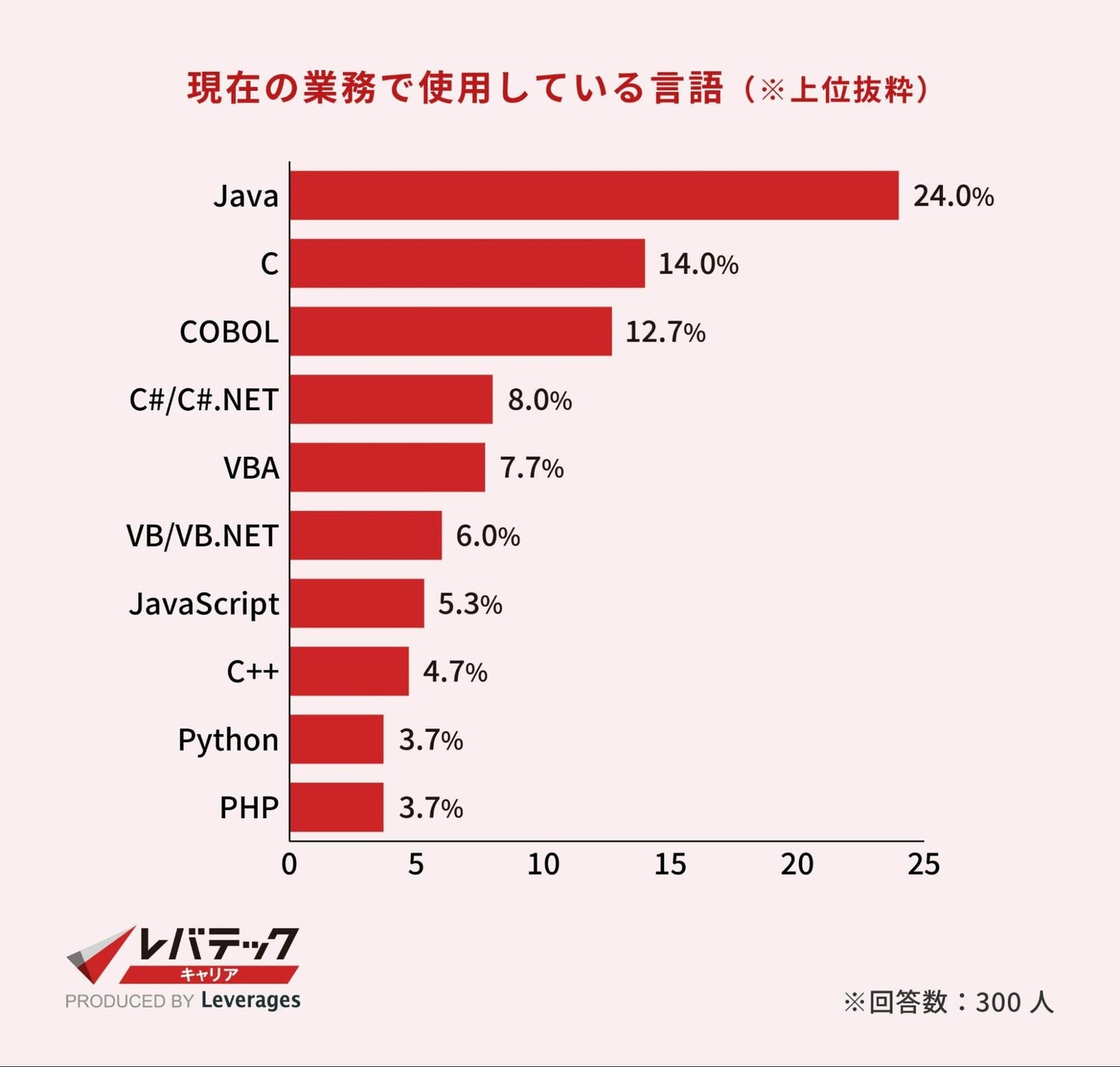 レバテック株式会社が運営する、ITエンジニア中途向け転職支援エージェント、レバテックキャリア( https://career.levtech.jp/ )は、社会人エンジニア300名を対象に、プログラミング言語/開発環境に関するトレンド調査を実施しました。