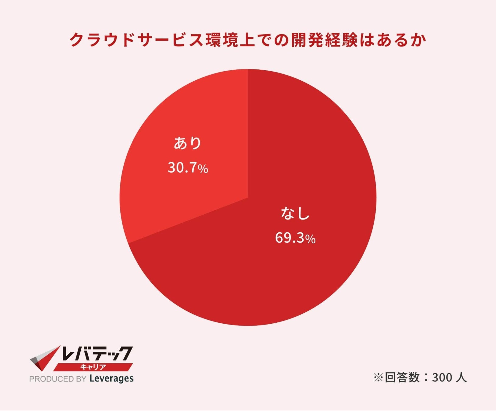 社会人エンジニアのうち、クラウド環境上での開発経験があるエンジニアは全体の30.7%という結果になりました。近年、多くの企業がクラウドサービスへの移行を進める一方で、クラウド環境上での開発経験があるエンジニアはあまり多くはないようです。