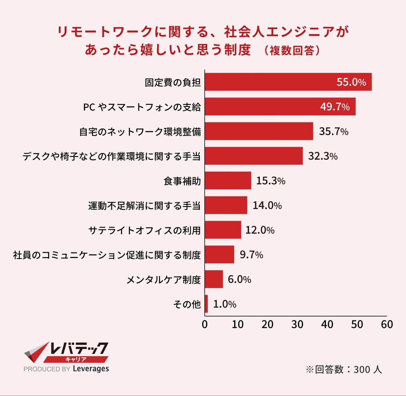 レバテック株式会社が運営する、ITエンジニア中途向け転職支援エージェント、レバテックキャリア( https://career.levtech.jp/ )は、社会人エンジニア300名を対象に、ITエンジニアのリモートワーク事情調査を実施しました。