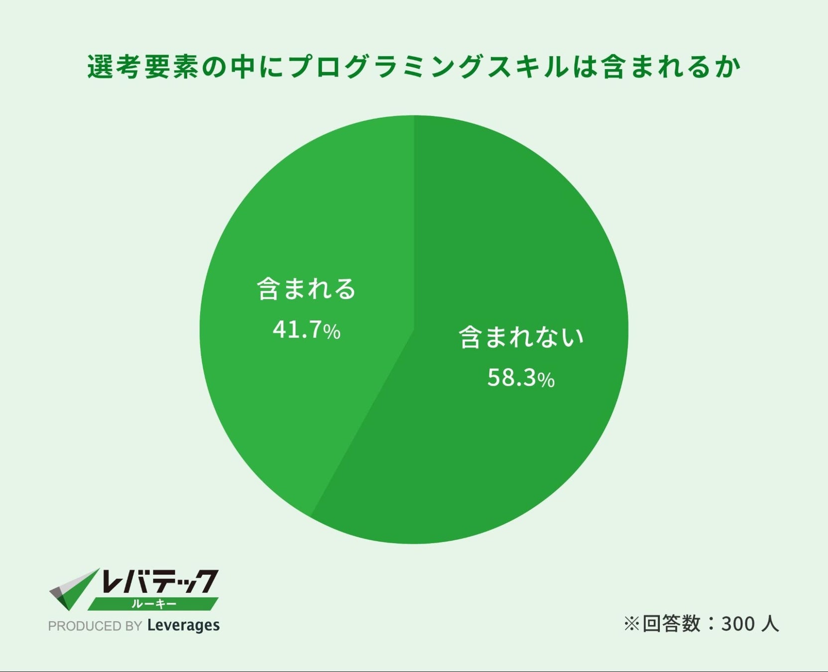 新卒エンジニアの採用において、選考要素にプログラミングスキルを「含む」と回答した企業は、全体の41.7%という結果になりました。