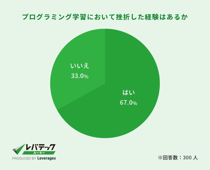 プログラミング学習中に挫折経験があると回答した学生は、全体の67%という結果になりました。3人に2人が、何かしらの理由でプログラミングの習得に苦戦したことがあるようです。