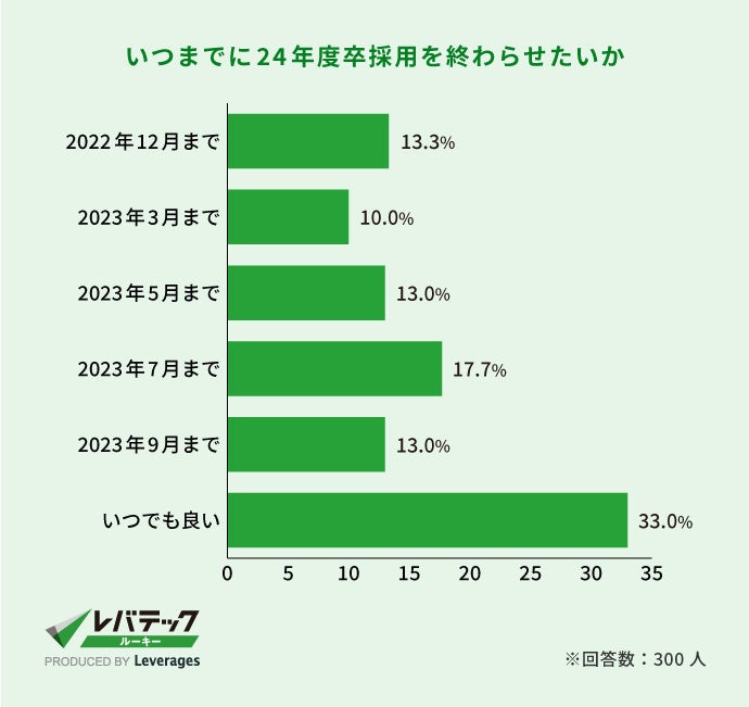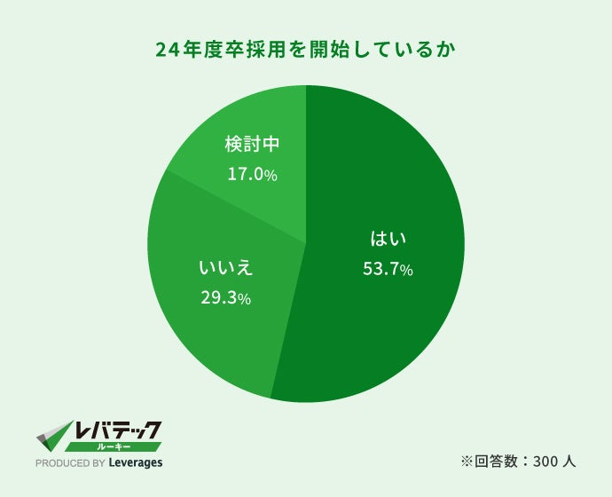 レバテック株式会社が運営する、ITエンジニア専門新卒向け就職支援エージェント、レバテックルーキー( https://rookie.levtech.jp/ )は、新卒エンジニア採用担当者300名を対象に、24年度卒採用に関する動向調査を実施いたしました。