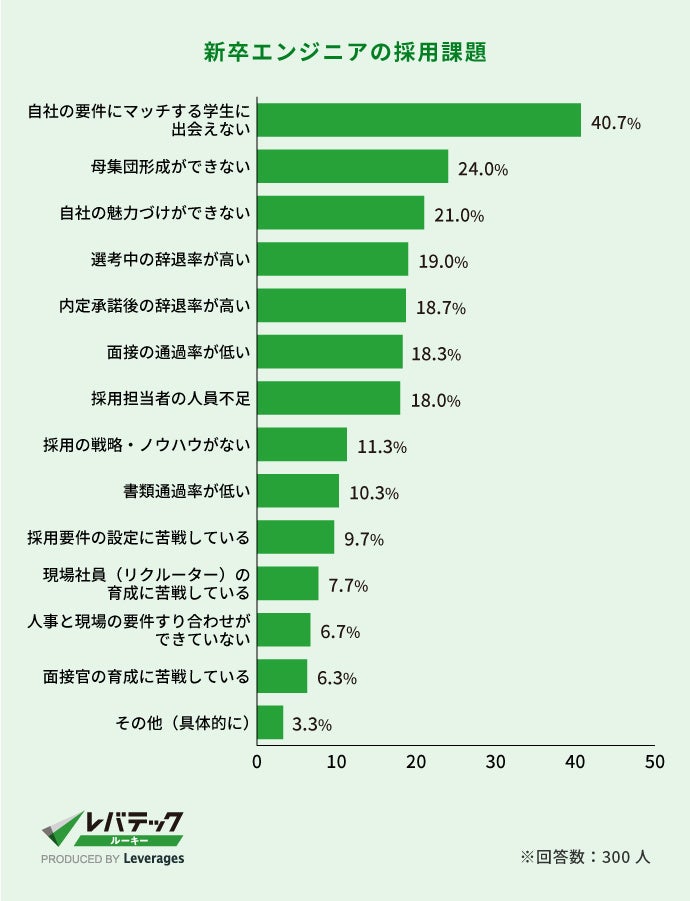 新卒エンジニアの採用課題、1位は「自社の要件にマッチする学生に出会えない」