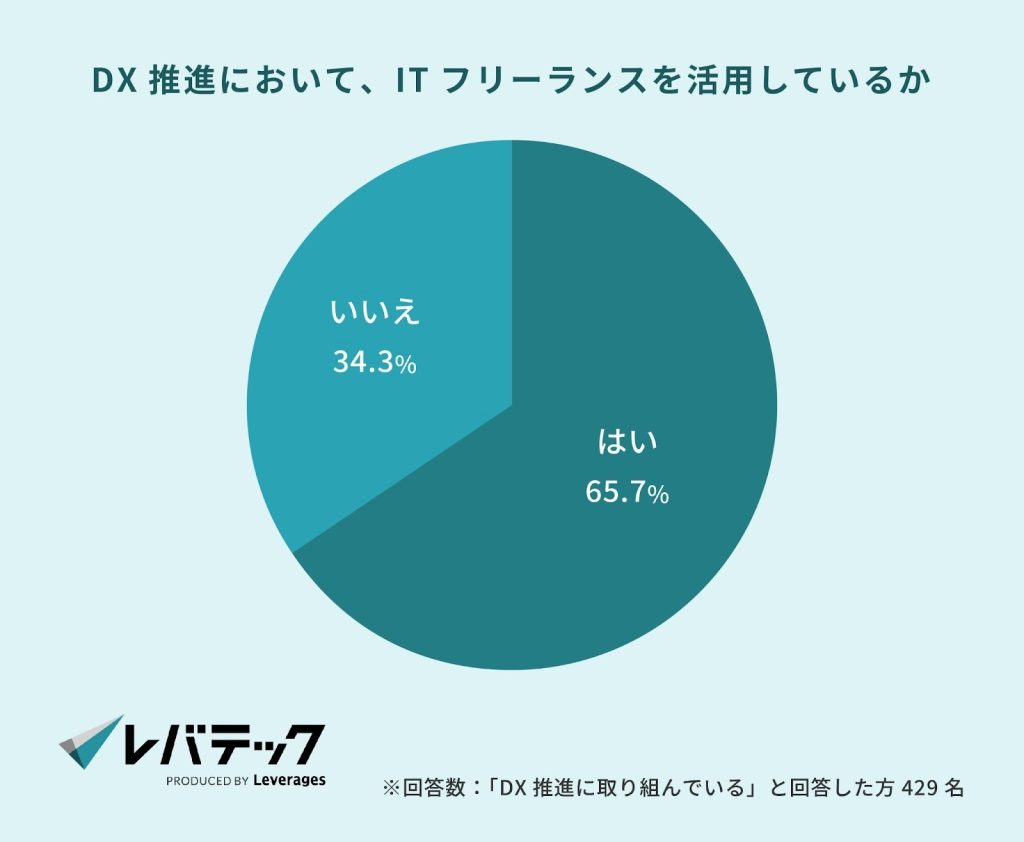 さらに、そのうち約65%が「DX推進においてもITフリーランスを活用している」と回答。IT人材の採用難が続く中、即戦力となるフリーランスが企業のDXを支える重要な存在となっていることが明らかになりました。