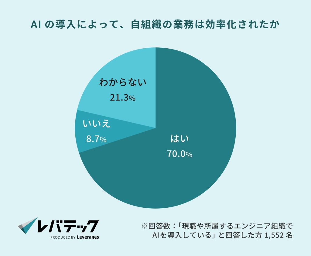 AIによる業務効率化の実感は7割に上昇、技術・非技術問わず幅広い業務で利用広がる